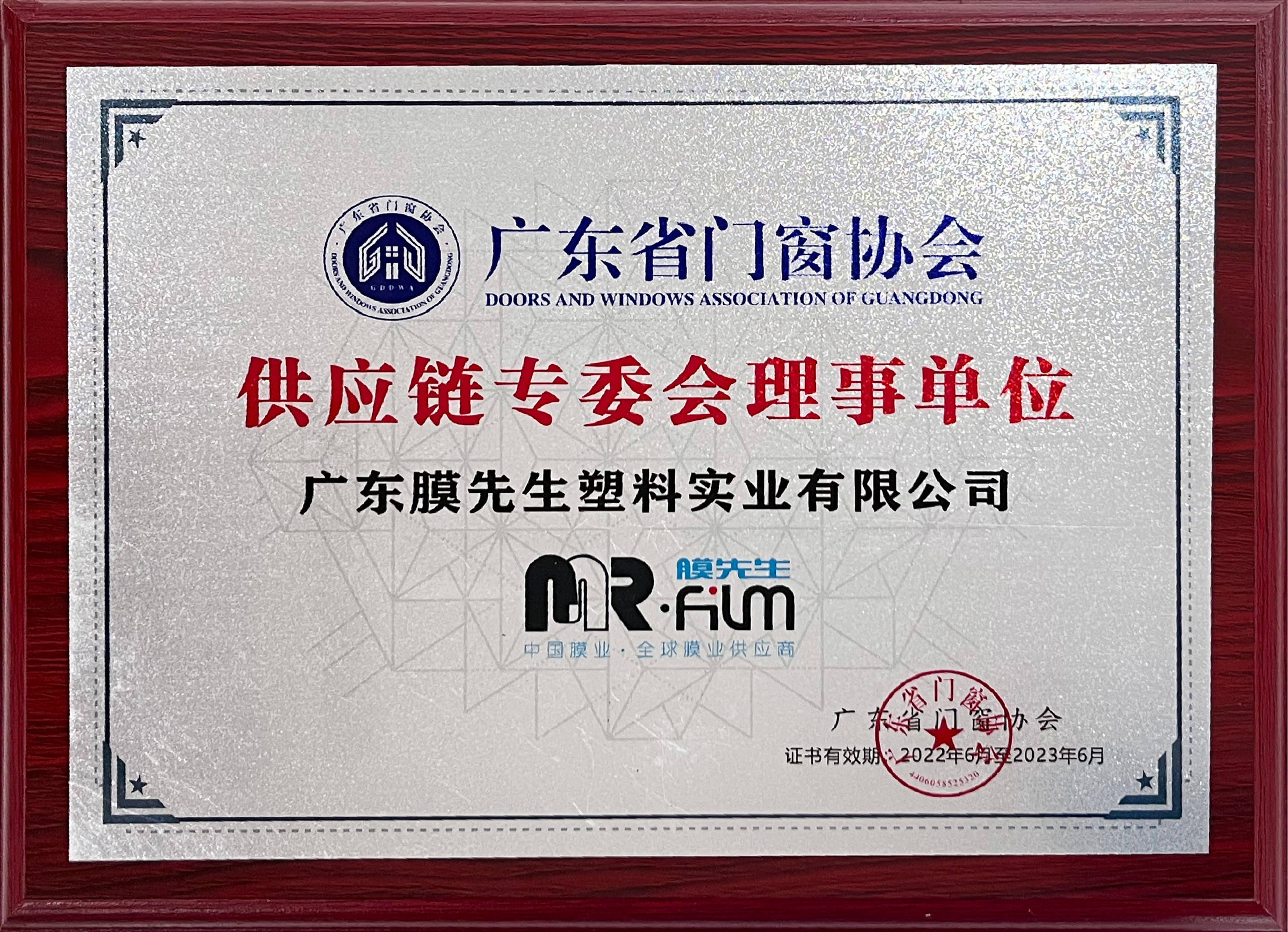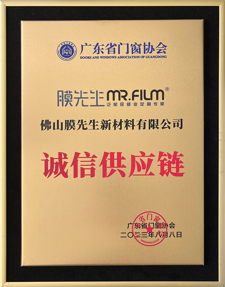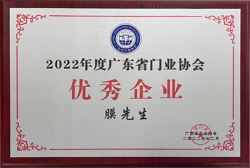 膜先生被評(píng)為廣東省門業(yè)協(xié)會(huì)優(yōu)秀企業(yè),榮膺廣東省門窗協(xié)會(huì)供應(yīng)鏈專委會(huì)理事單位。